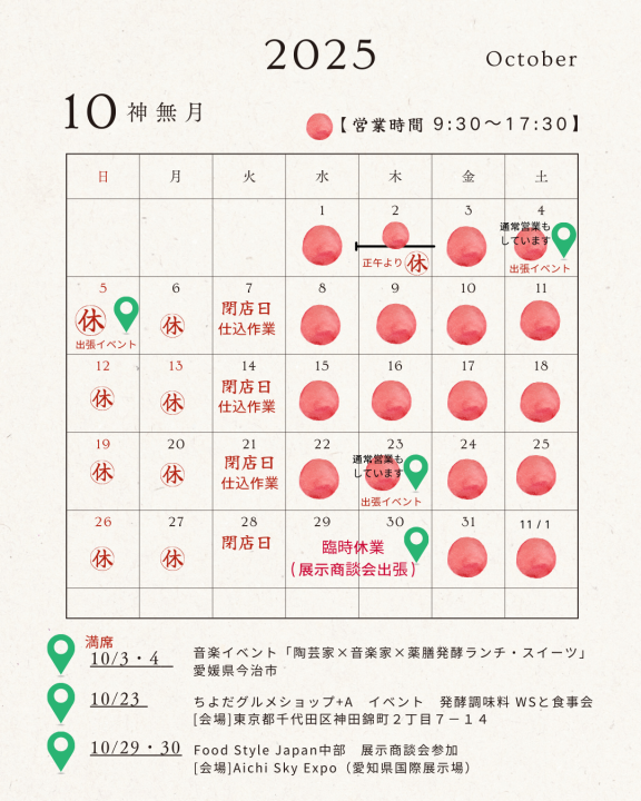 (メールの返信は定休日の翌日になります。出張講座等で臨時休業になる日もございます)